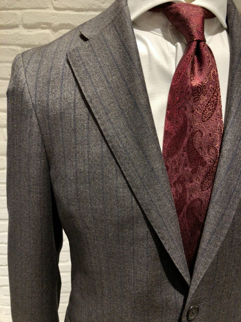 柄感は落ち着いていますが、イタリア生地らしい滑らかさと柔らかさがあり、クラシックな雰囲気が