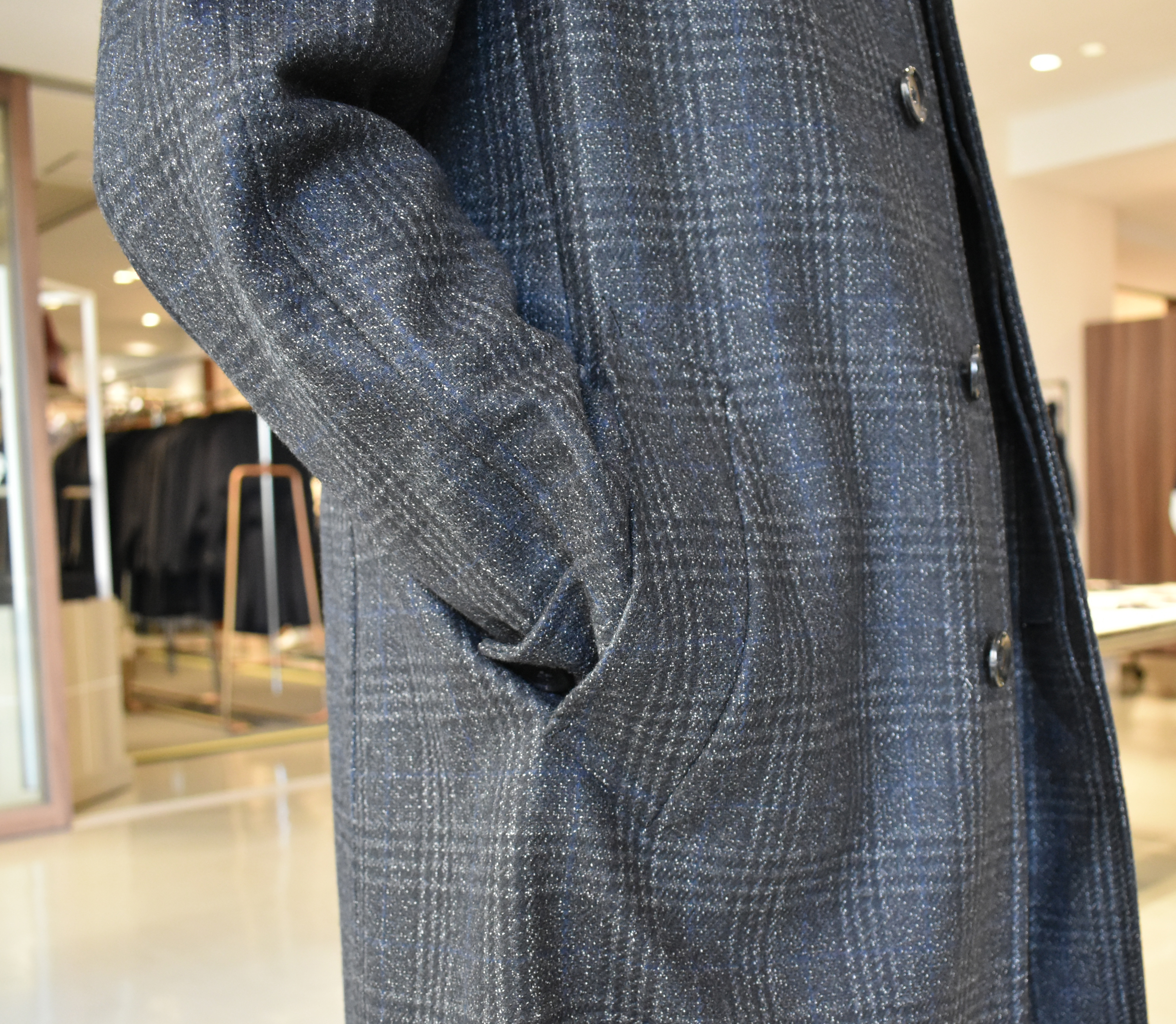 トレンドも抑えた着回せるコート♪グレンチェック柄の「バルカラーコート」