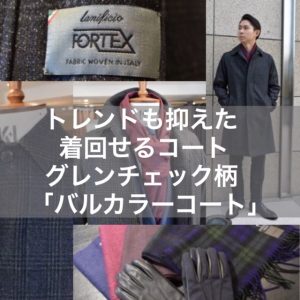 「グレンチェック柄のバルカラーコート」