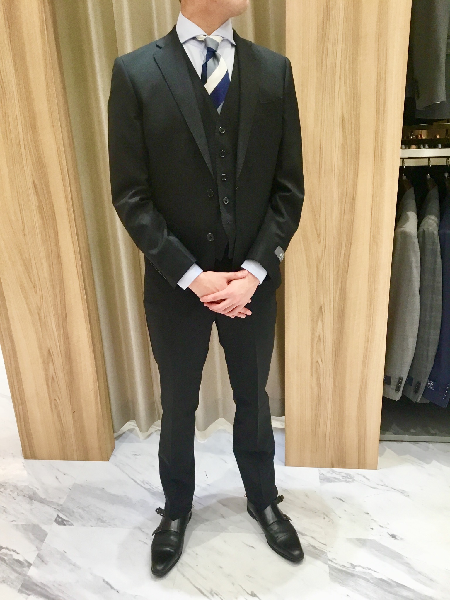 最後は黒の無地スーツ。