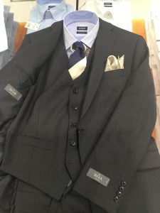 3,落ち着きとトレンド性のある、グレーのスリーピーススーツスタイル !価格¥38,000(税抜き)