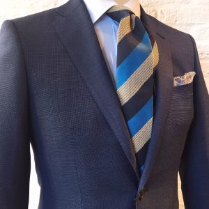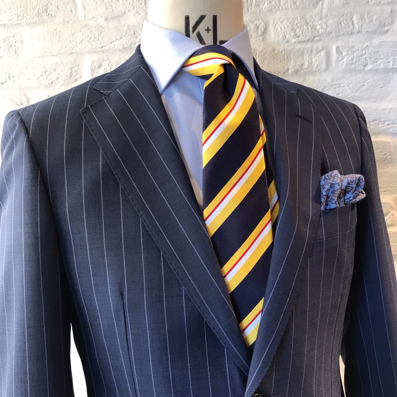 DRAGOブルースーツに爽やか3色のレジメンタルタイでスタート!