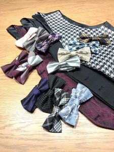 ベストを柄物に、ネクタイを蝶ネクタイにチェンジするだけ。