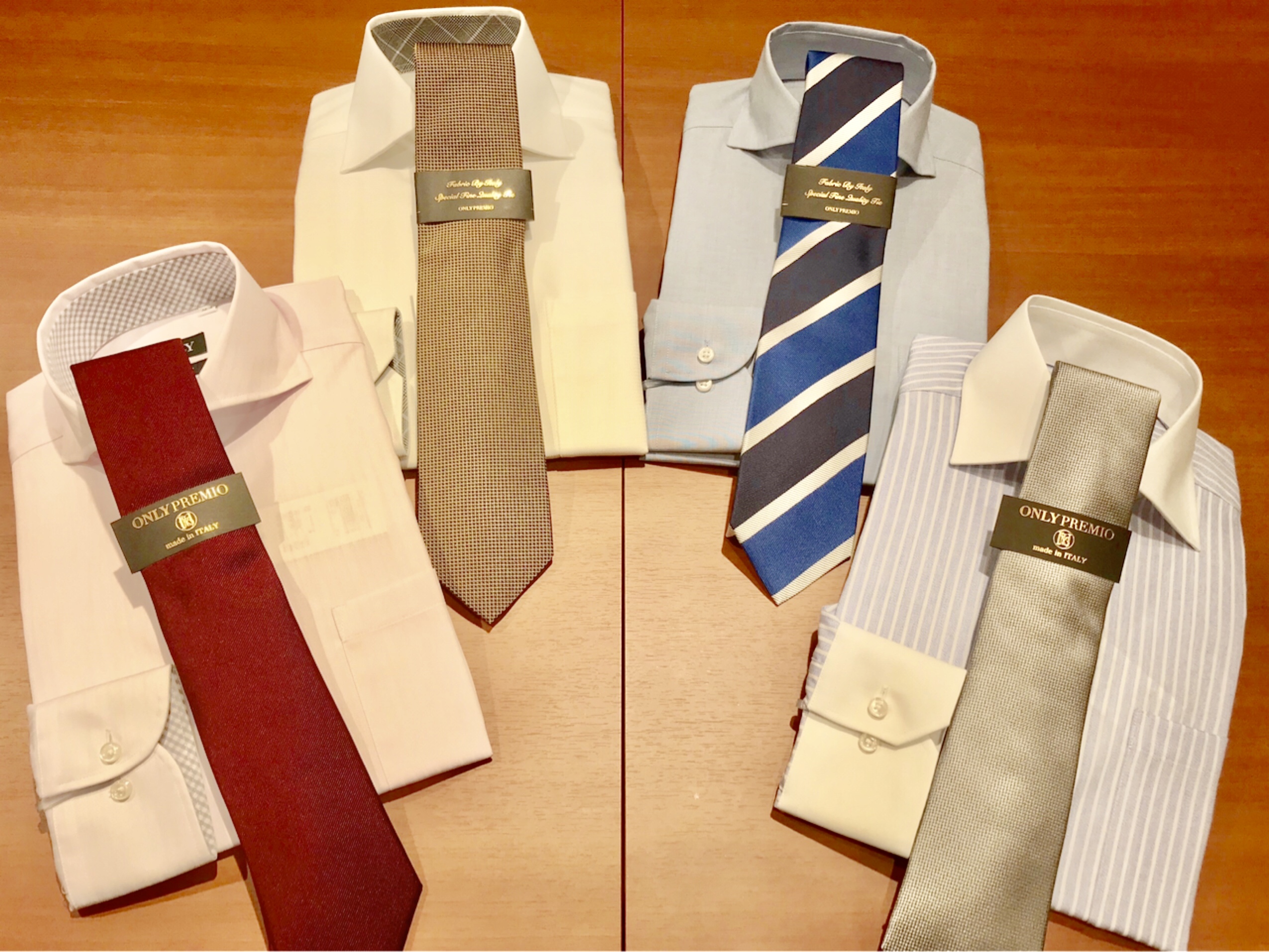 お好みのシャツとネクタイで個性を出してみては☆