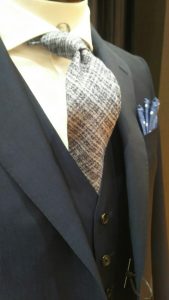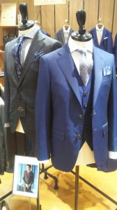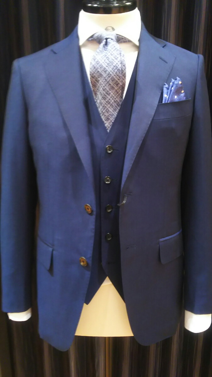 こちらもDRAGO社の生地を使用したブルーの3ピーススーツ