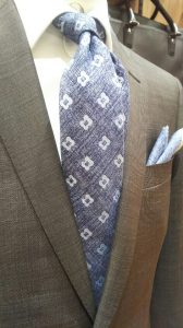 グレーがかった薄めのブラウンなので、ビジネスにも使いやすい1着です