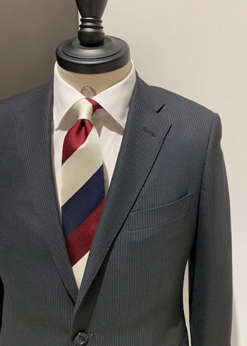 レジメンタル“のネクタイに変え”ビジネスマン“らしい