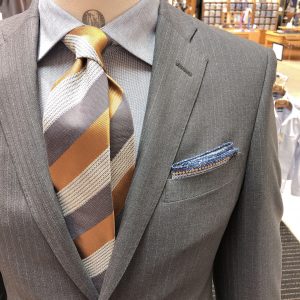 無地のスーツは持ってる。けど、はっきり柄が入っている物は…