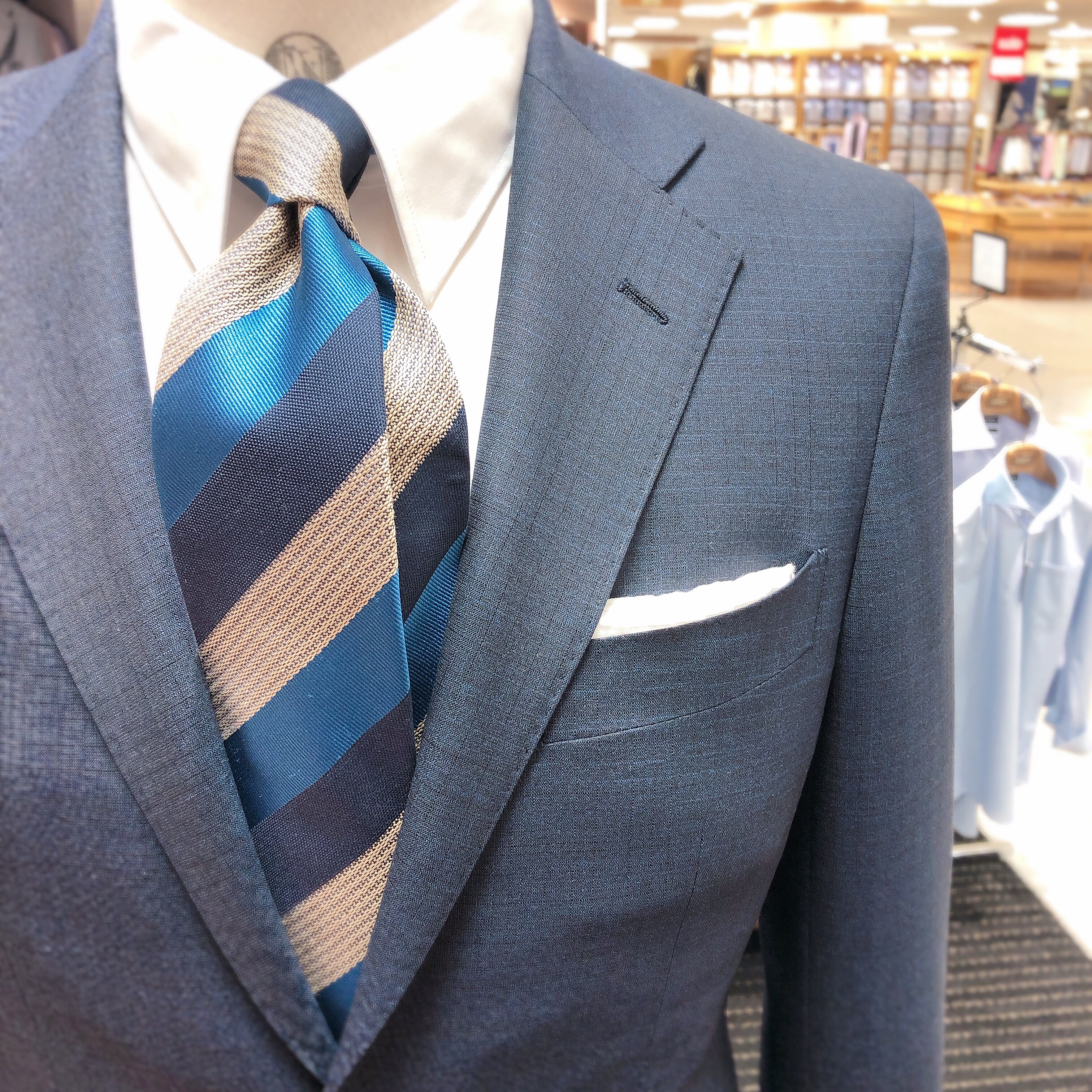 無地ではなく、さりげなく柄見えする柄無地スーツがおススメです。