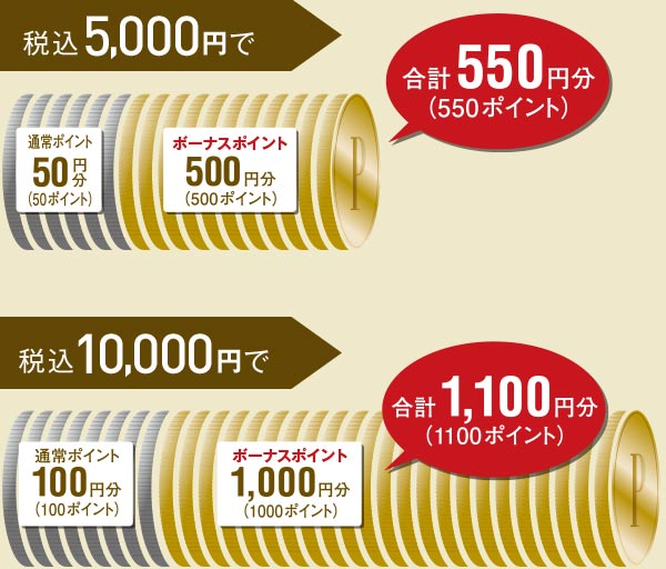 通常ポイント+ボーナスポイントがプレゼントされます!