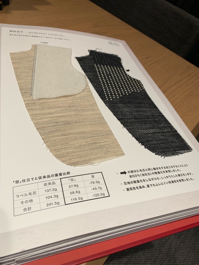 さらに肩パットやタレ綿の軽量化も図り、ハリとコシがあり、かつナチュラルな着心地と質感に仕上がる毛芯。
