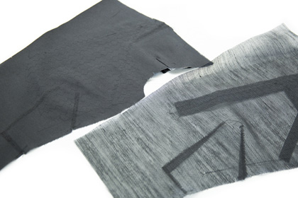 通常スーツ作りで決して使わない資材を使用し、特殊加工を施しました。