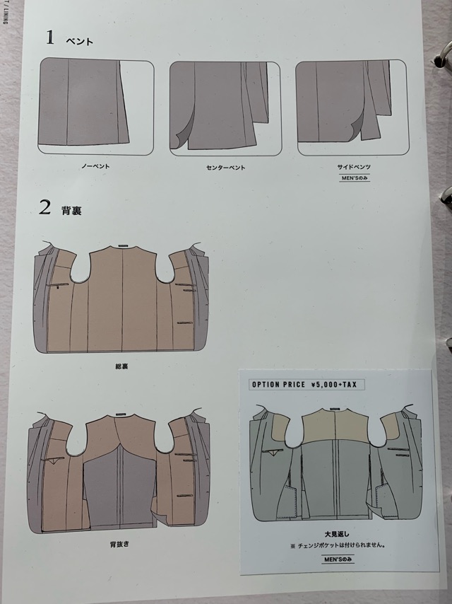 オーダーだからカスタム出来るので、お好みの1着をお仕立て頂けます。