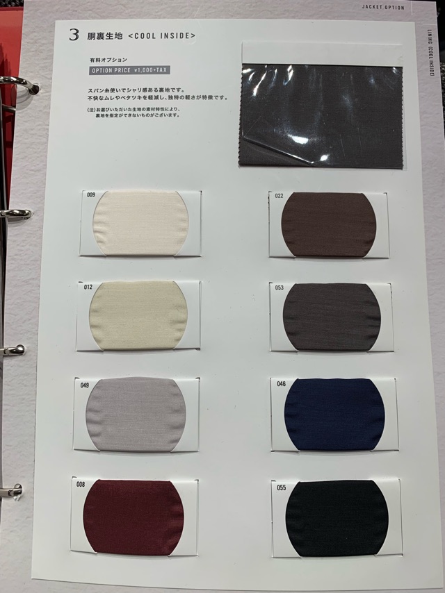 ・キュプラ胴裏地 オプション代¥1,000~(税抜き)