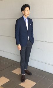 のパンツと合わせてジャケパンスタイルも