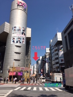 スターバックスさんを右手に抜けて文化村通りを通って頂くと正面に
