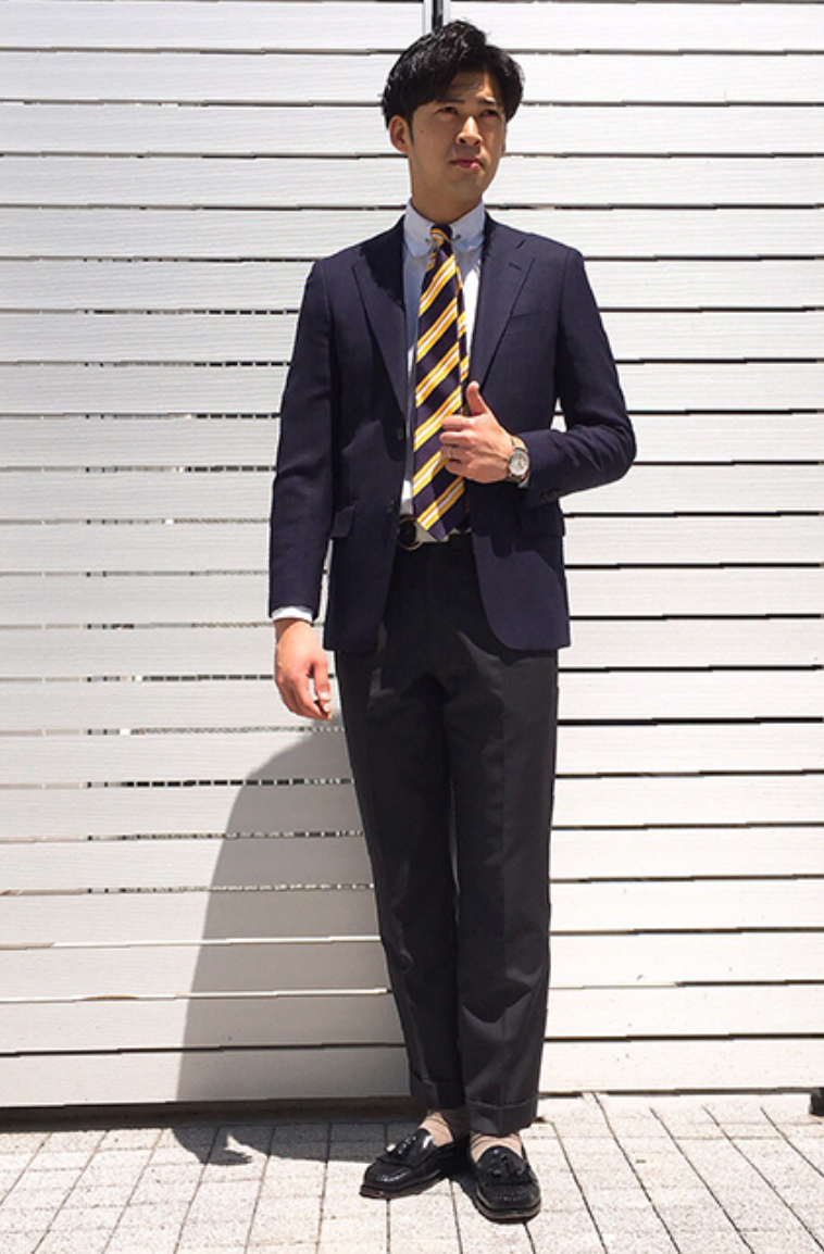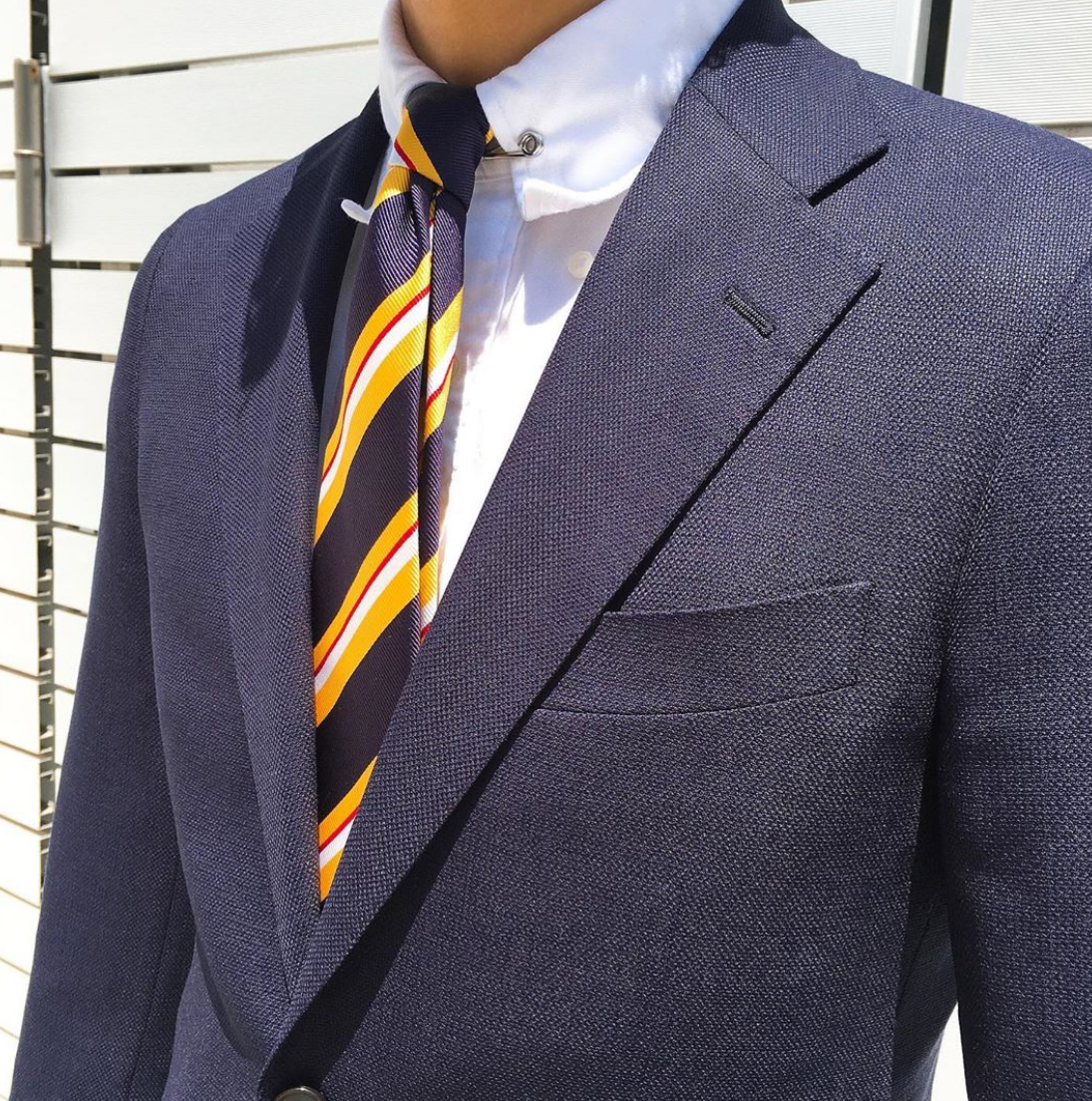 “イエロー“の”レジメンタル“で”ジャケパンスタイル“を引き締めます‼