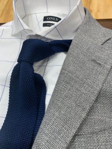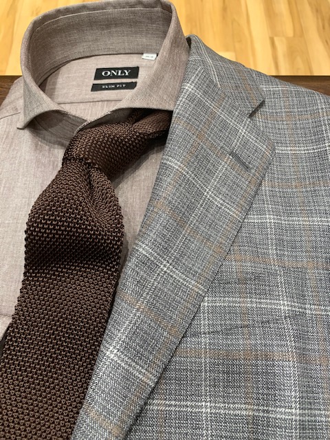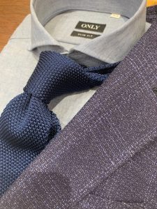 上で紹介したジャケットにニットタイを合わせてみました♪