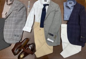 今回は梅雨時期も快適に過ごしていただけるジャケパンスタイルのご紹介です!!
