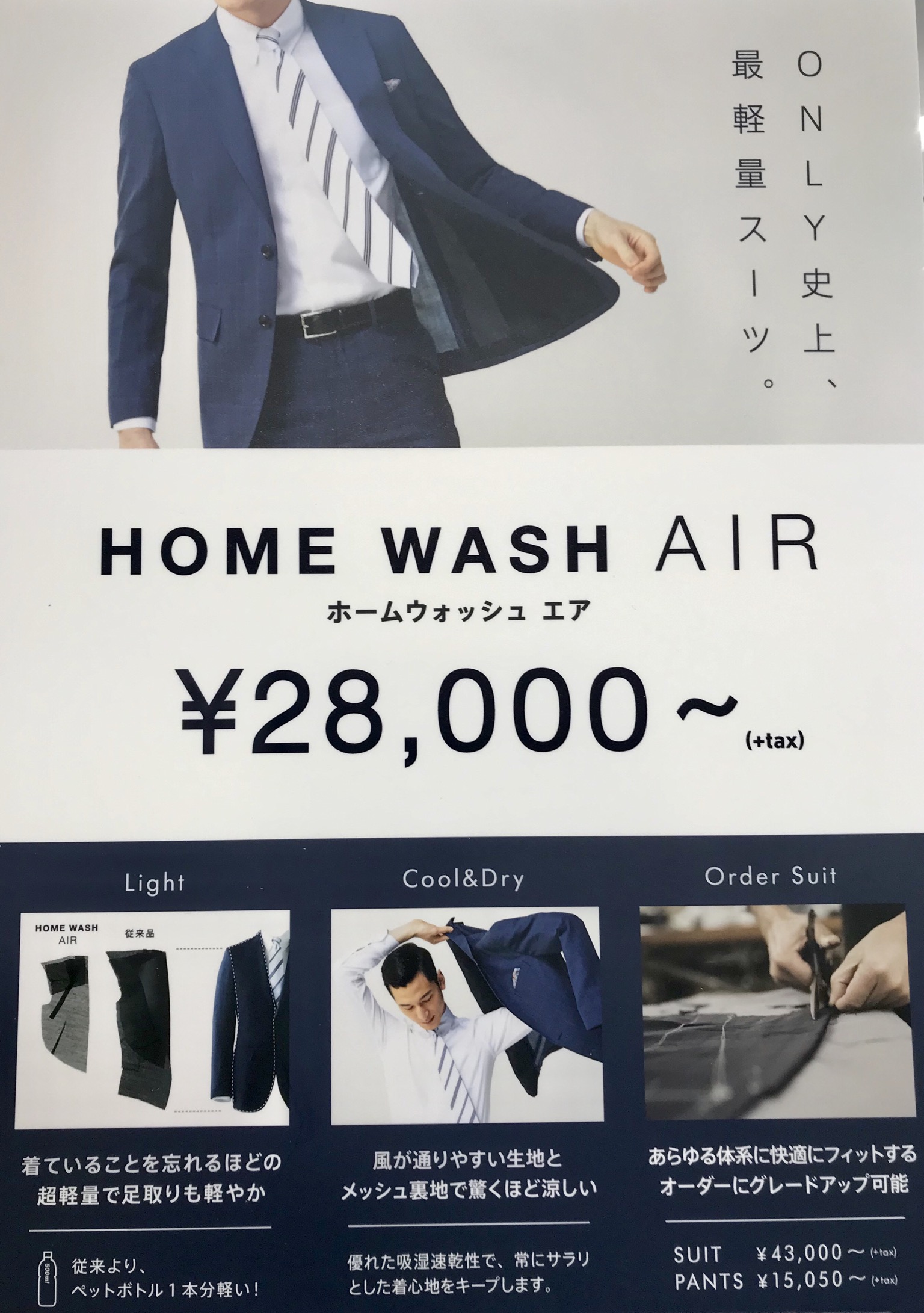 ご自宅で洗えるONLY史上最軽量スーツ!!その名も・・・