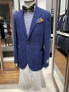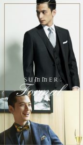 近年増えた、リゾートウエディングや夏らしいガーデンパーティーには程よいリラックス感のあるジャケットスタイルもおすすめです。
