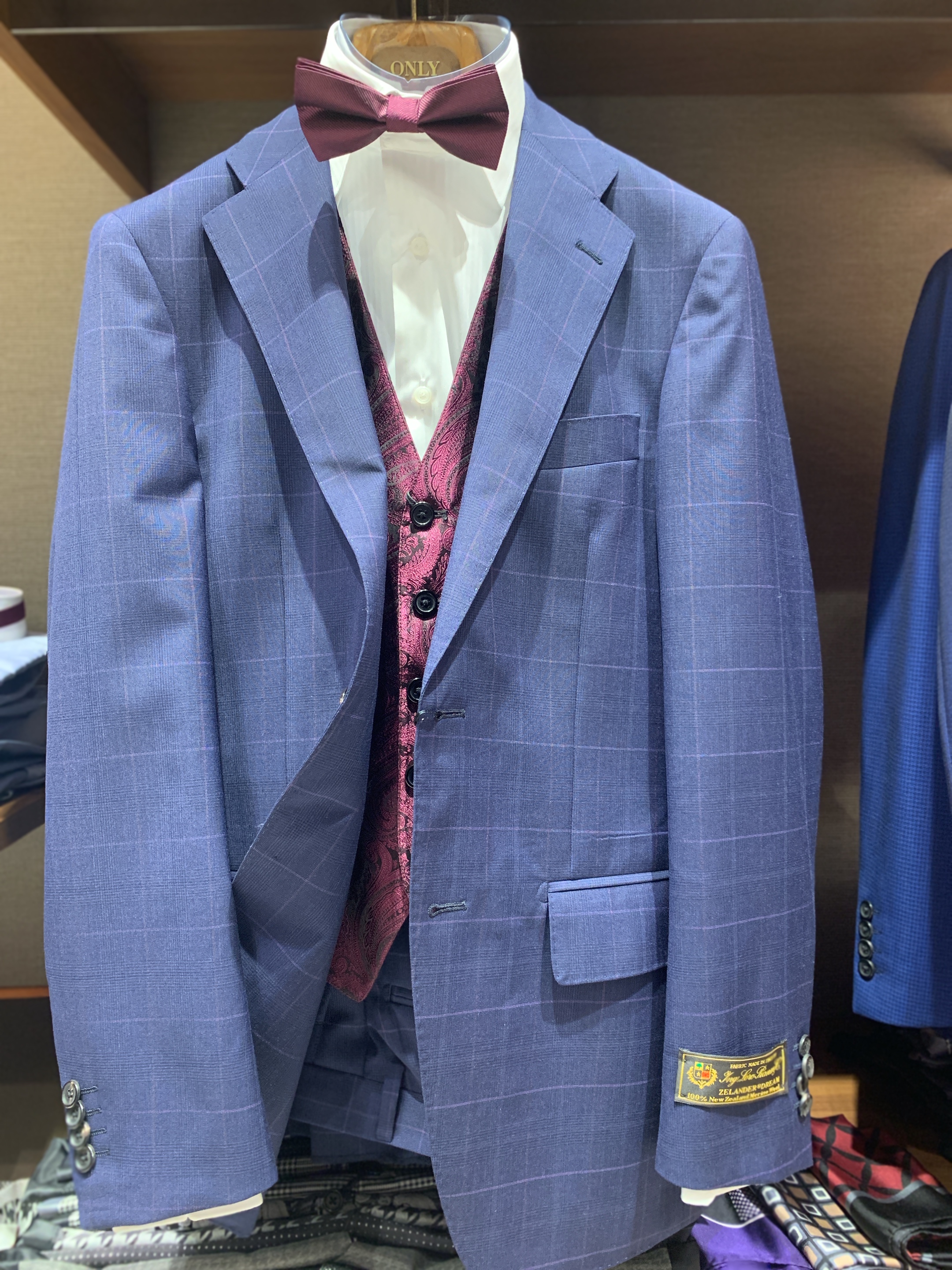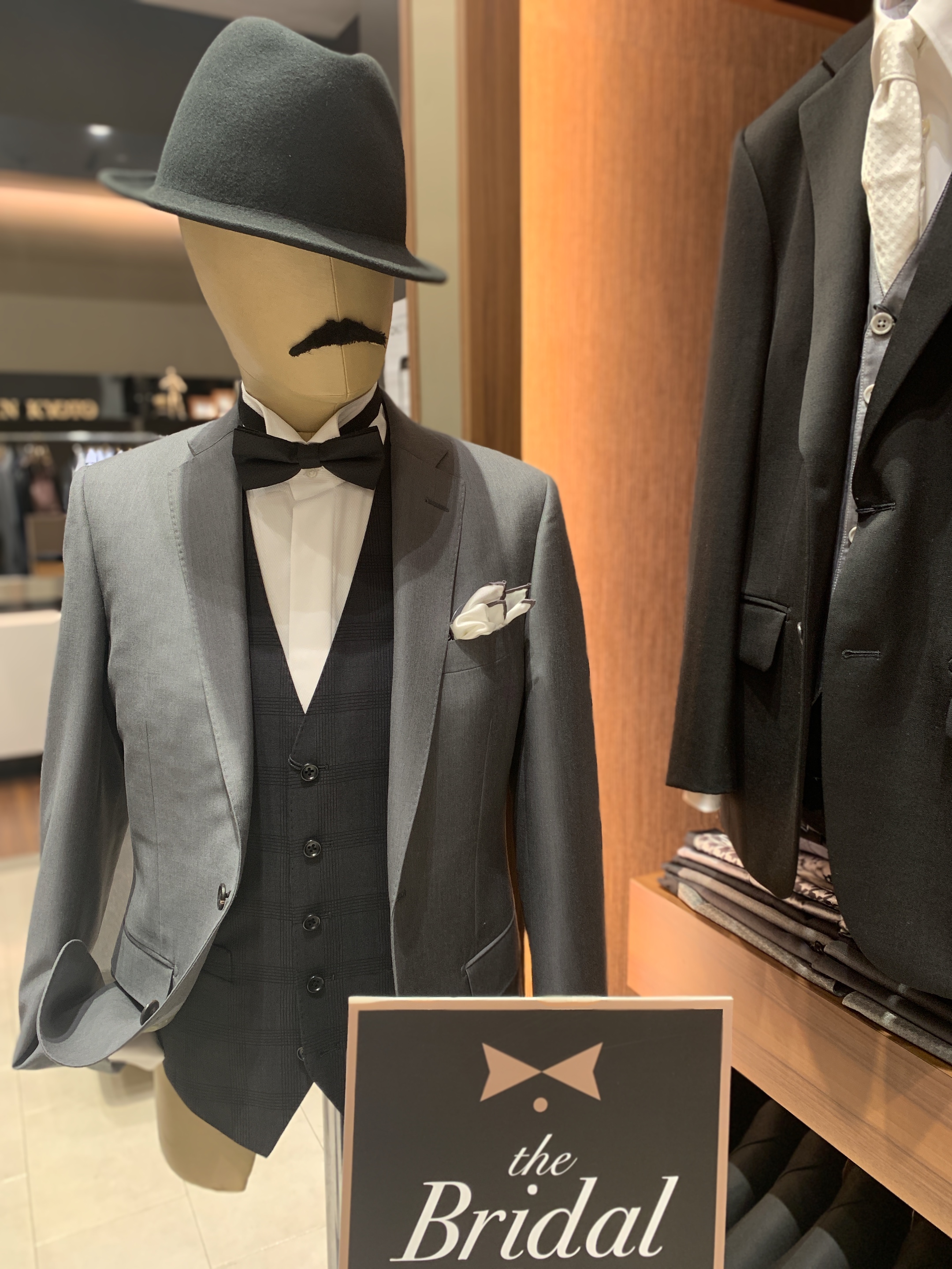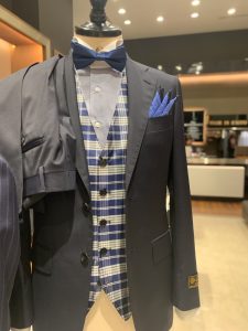 結婚式の定番、共生地の3ピーススーツ。
