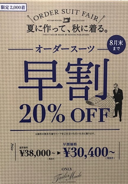 納期2ヶ月頂戴する代わりに生地代から20%OFF!