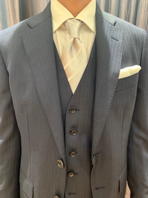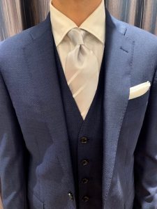 ここまでインポート生地DRAGO社のベスト付きスーツを