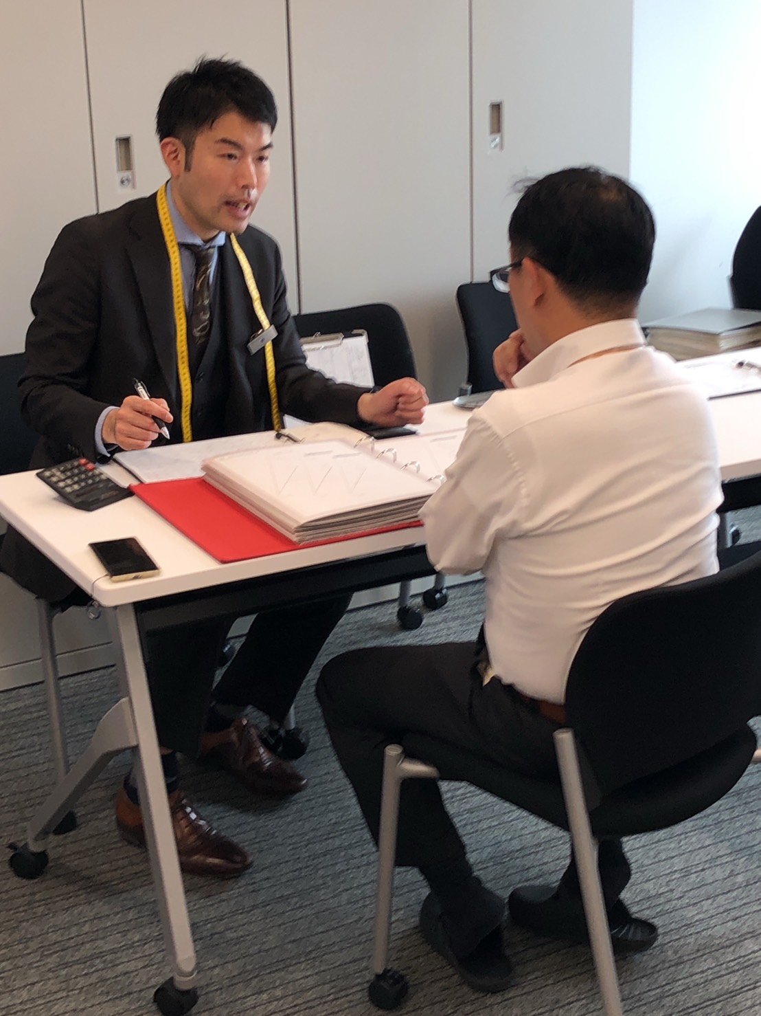 お客様の要望や用途も様々ですのでスーツ談議に花が咲き楽しく営業させていただきました。