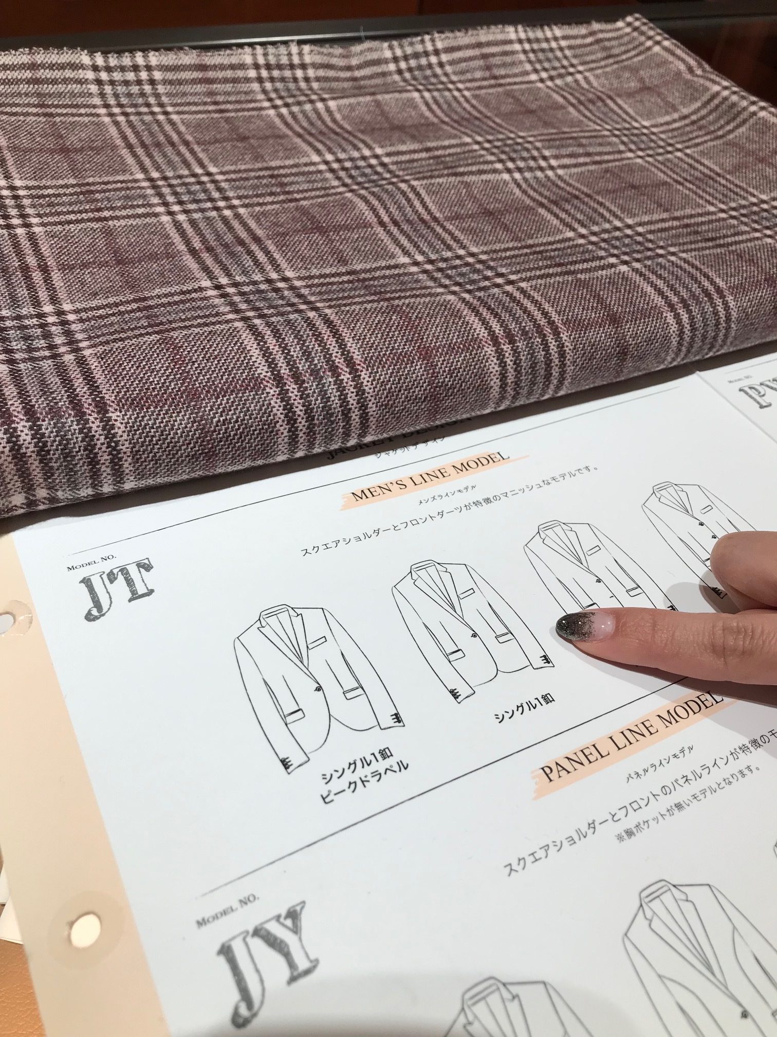白田:テーラーメイドでしたら、ジャケットの型紙を選べて裏地や釦までお選びいただけます。オリジナルの1着が仕上がるので楽しみですね。