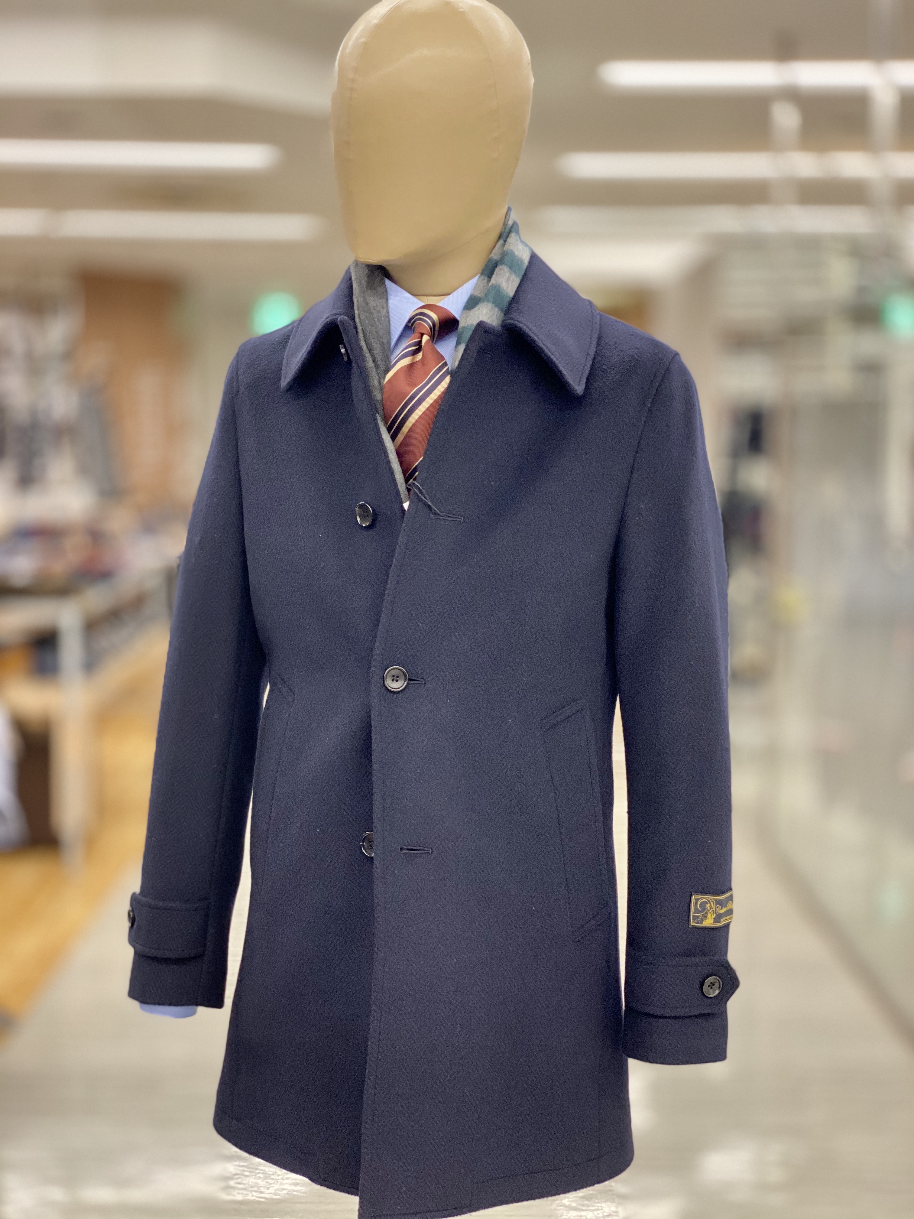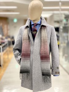 他のコートと比べると着丈が短く、ジャケパンスタイルにも合わせやすいコートです。