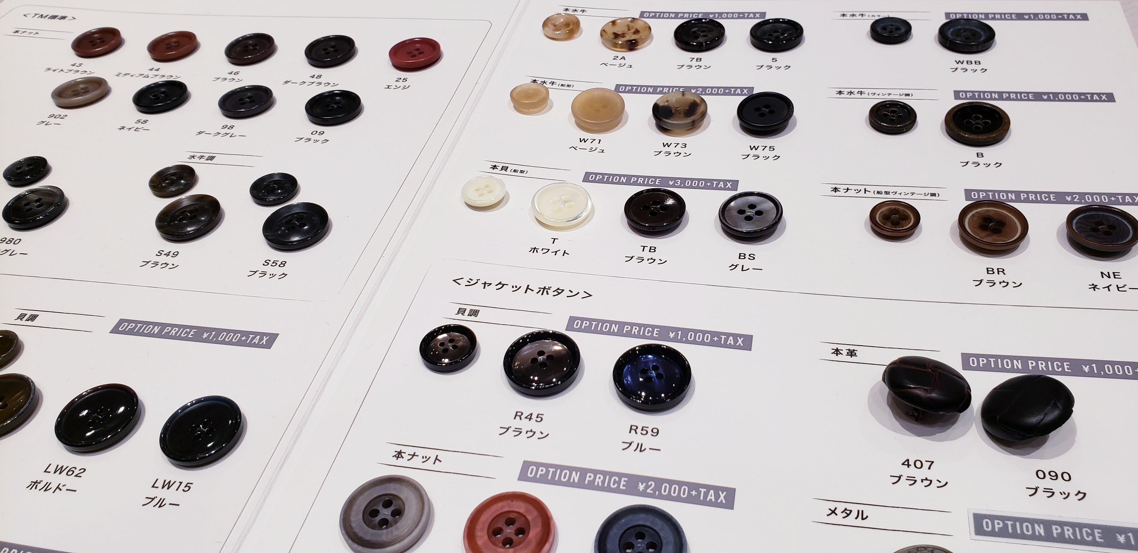 裏地やボタンも¥0~3,000円+tax
