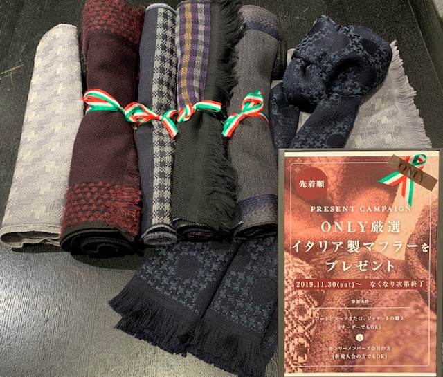 なんと10,000円相当するイタリア製マフラーをプレゼントしております!!