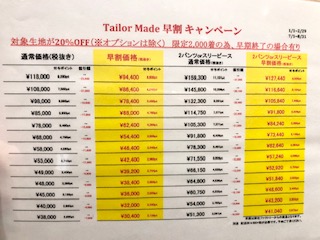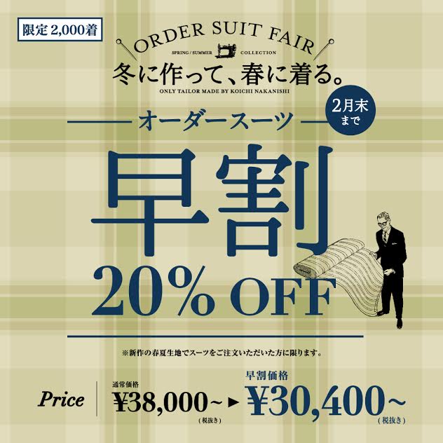 今年もオーダースーツの早割キャンペーンがスタートしました!!