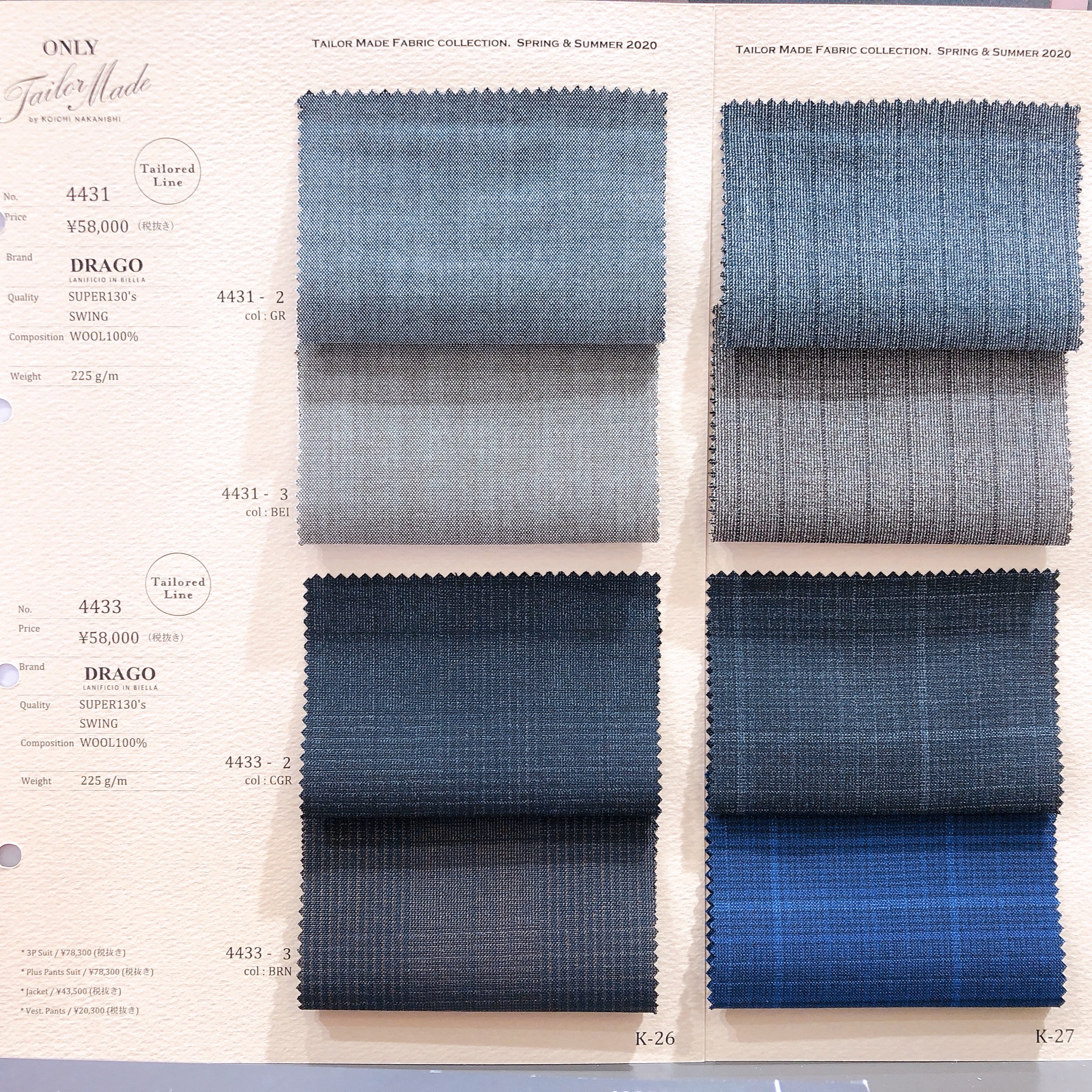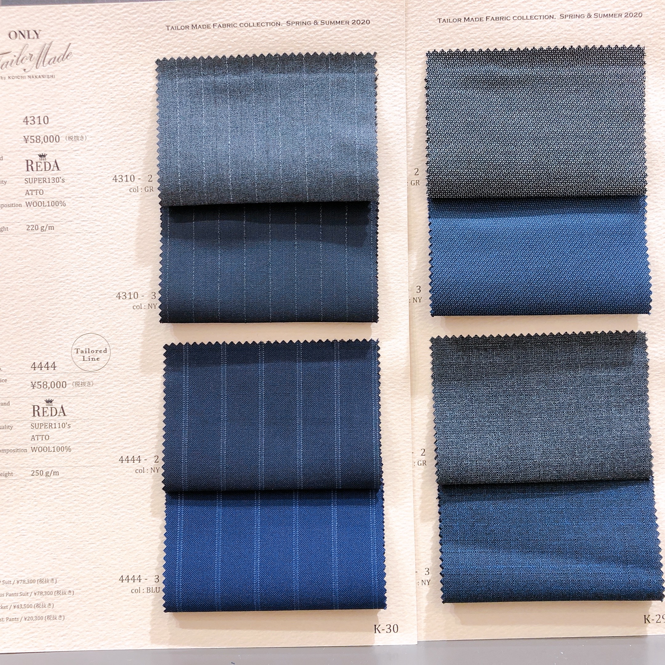 3月よりテーラードラインというオーダースーツ(テーラーメイド)の生地が28種類追加で増えております。