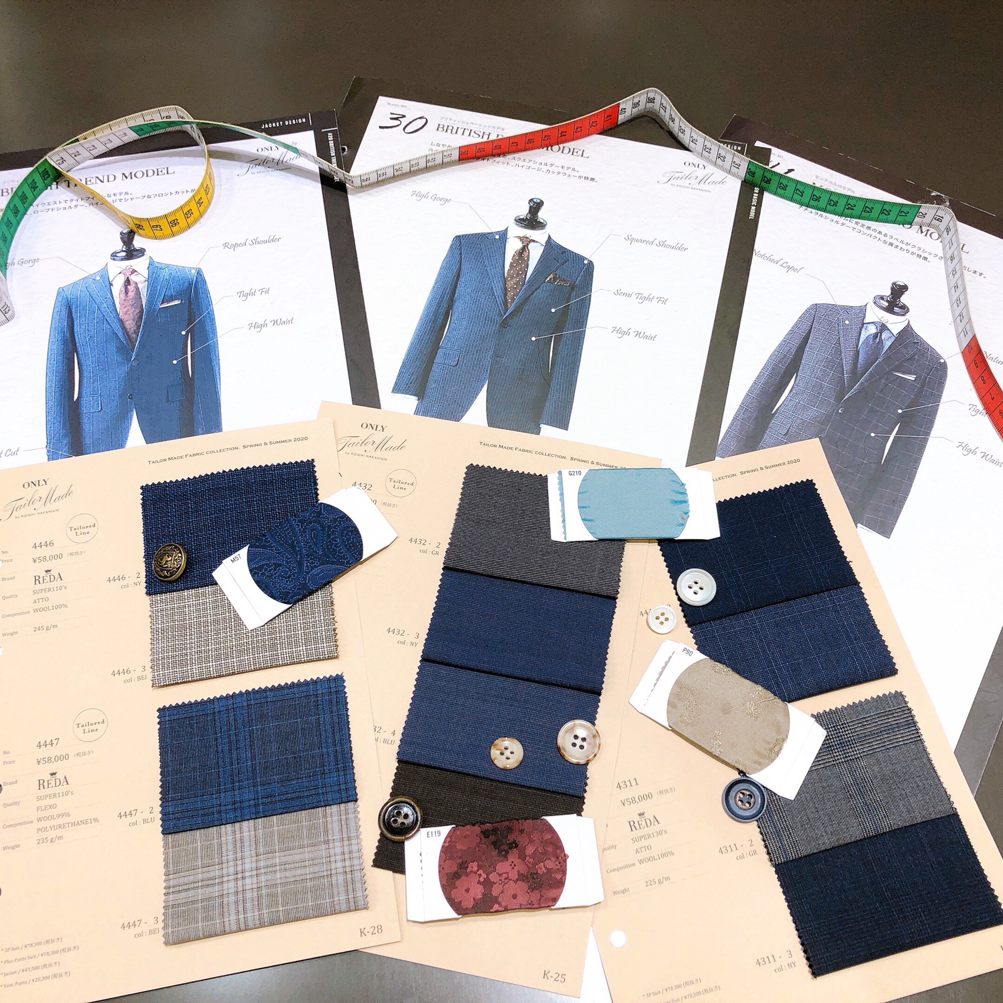テーラードラインは春夏らしい涼しい生地が多く、今回はストレッチに特化した生地が増えてます。