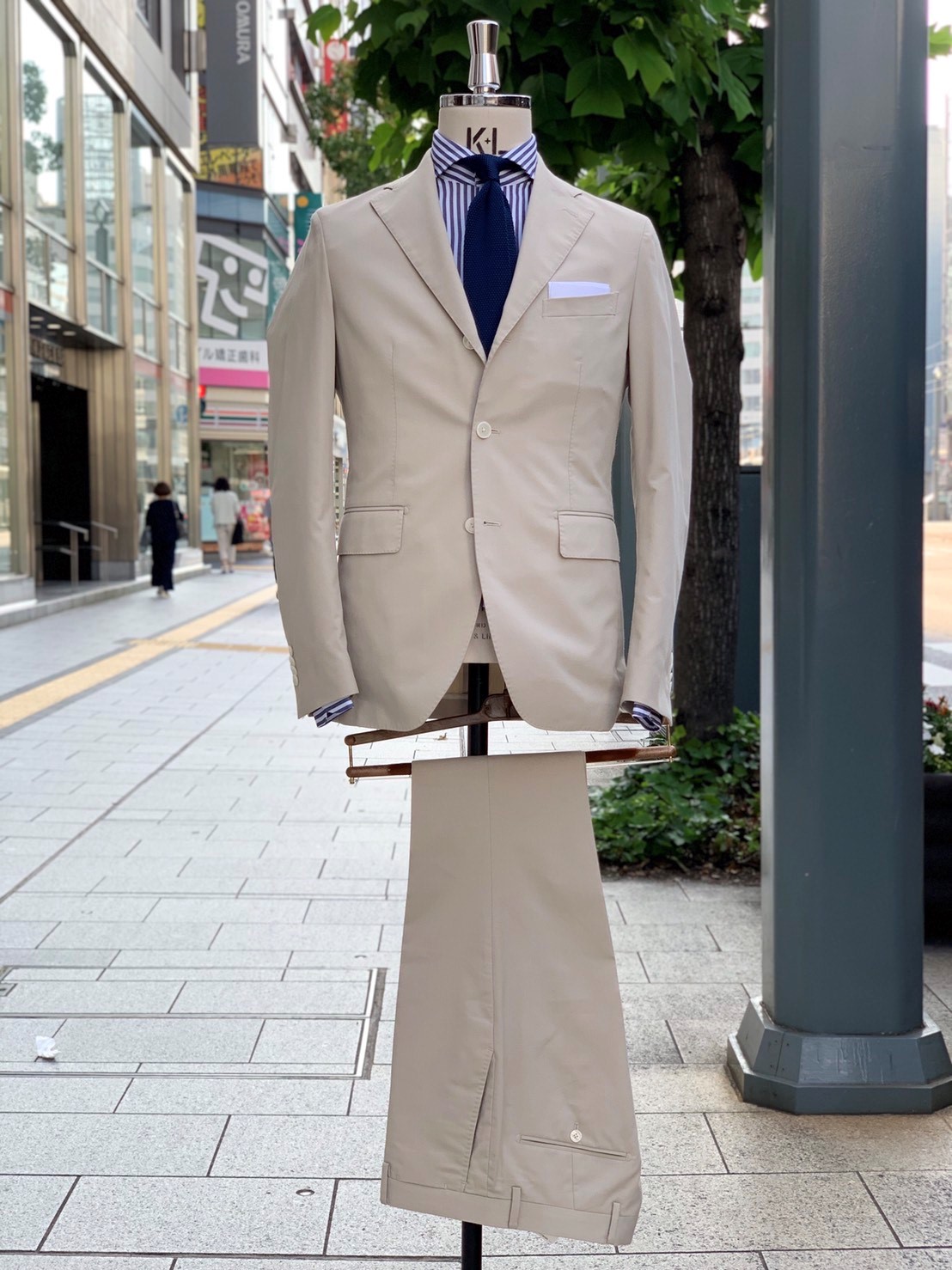 今年らしいベージュ色のセットアップに