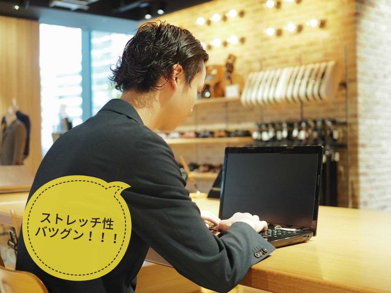 ポリウレタン混紡の為、ストレッチ性も抜群です。肩・背中にも負荷がかからずパソコン作業もラクチンです。