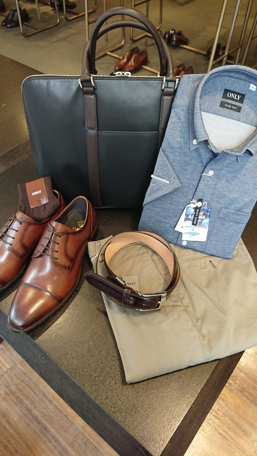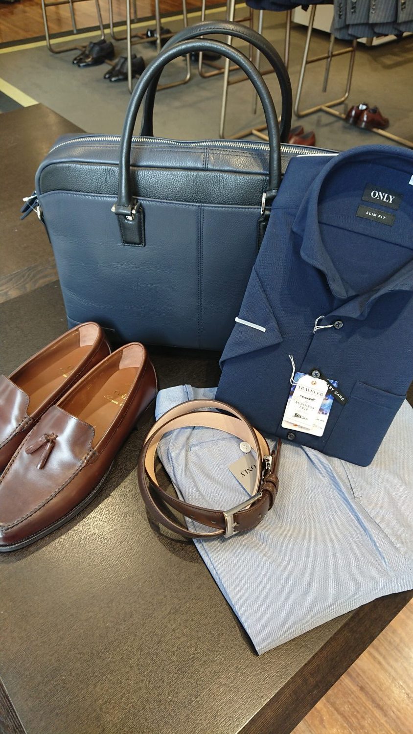 前回のブログでご紹介したコーディネートに靴や革小物を合わせてみたので