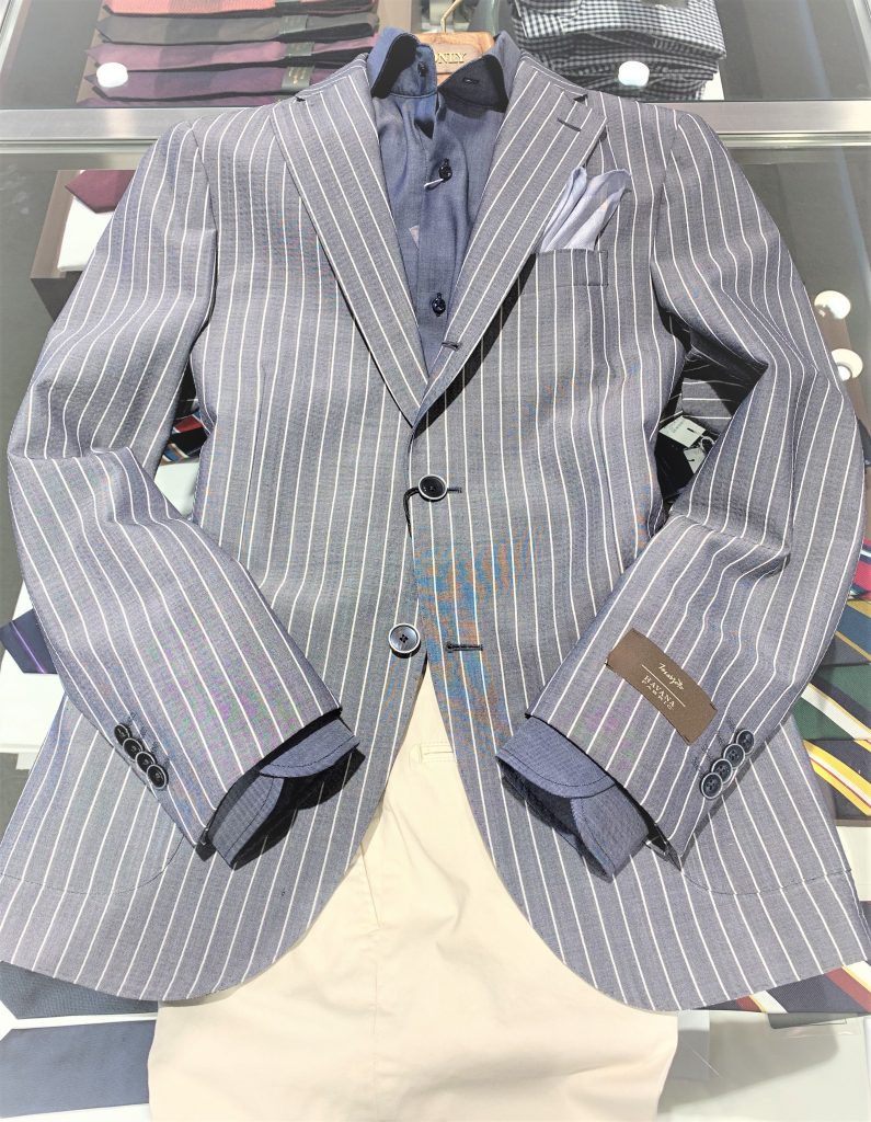 洋服好きにはキビしい季節ですが少しでも見た目の涼しさは取り入れたいものですね。