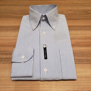 長袖の第3位です!!こちらはシアサッカー素材なので涼しく着用していただける商品です!!また襟が他のボタンダウンと違うんです!!なにが違うのかは是非店頭で確認してみてください!!!ノーネクタイの今だからの利点もある違いです☆