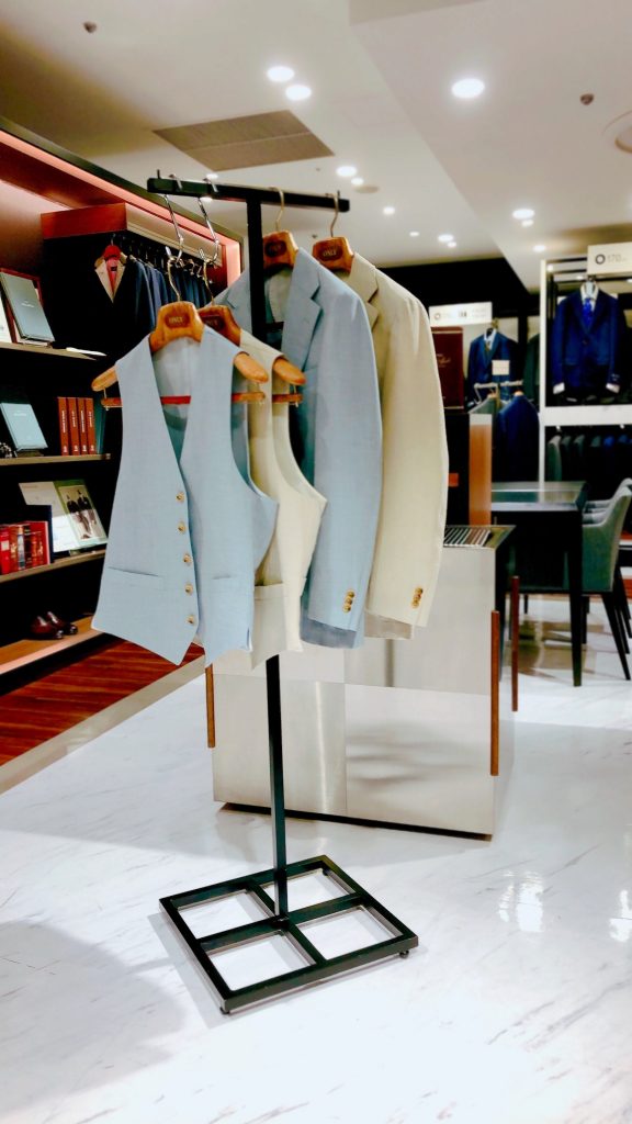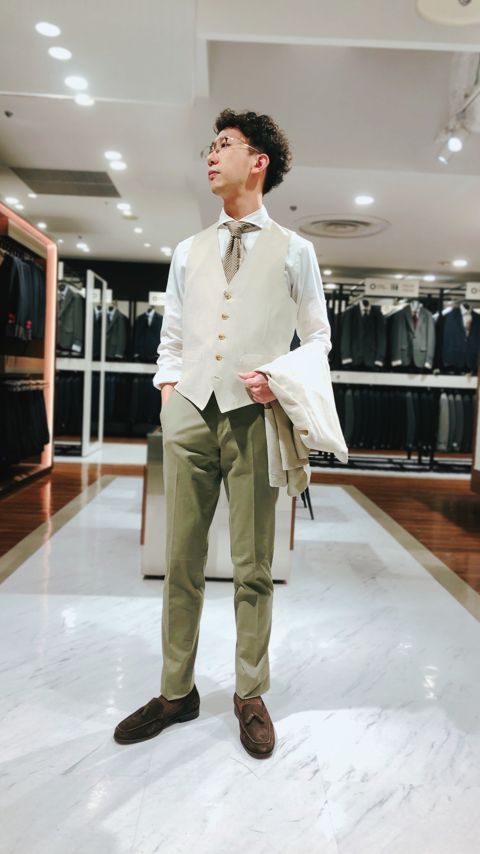 まずご紹介するのは、素材感が実に夏らしいジャケットとベスト。