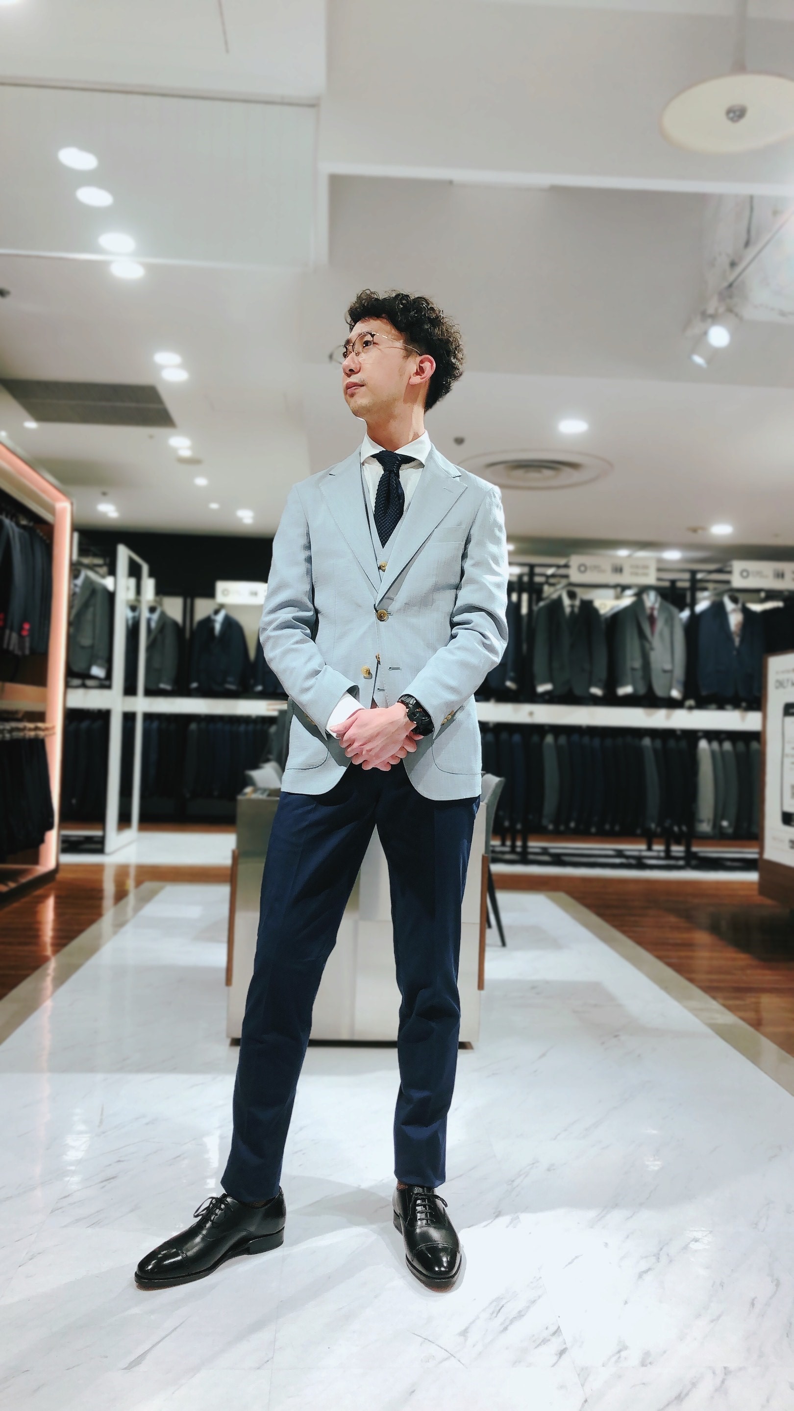 軽い素材感なので、しっかりとパンツの色味でメリハリをつけてタイドアップすると