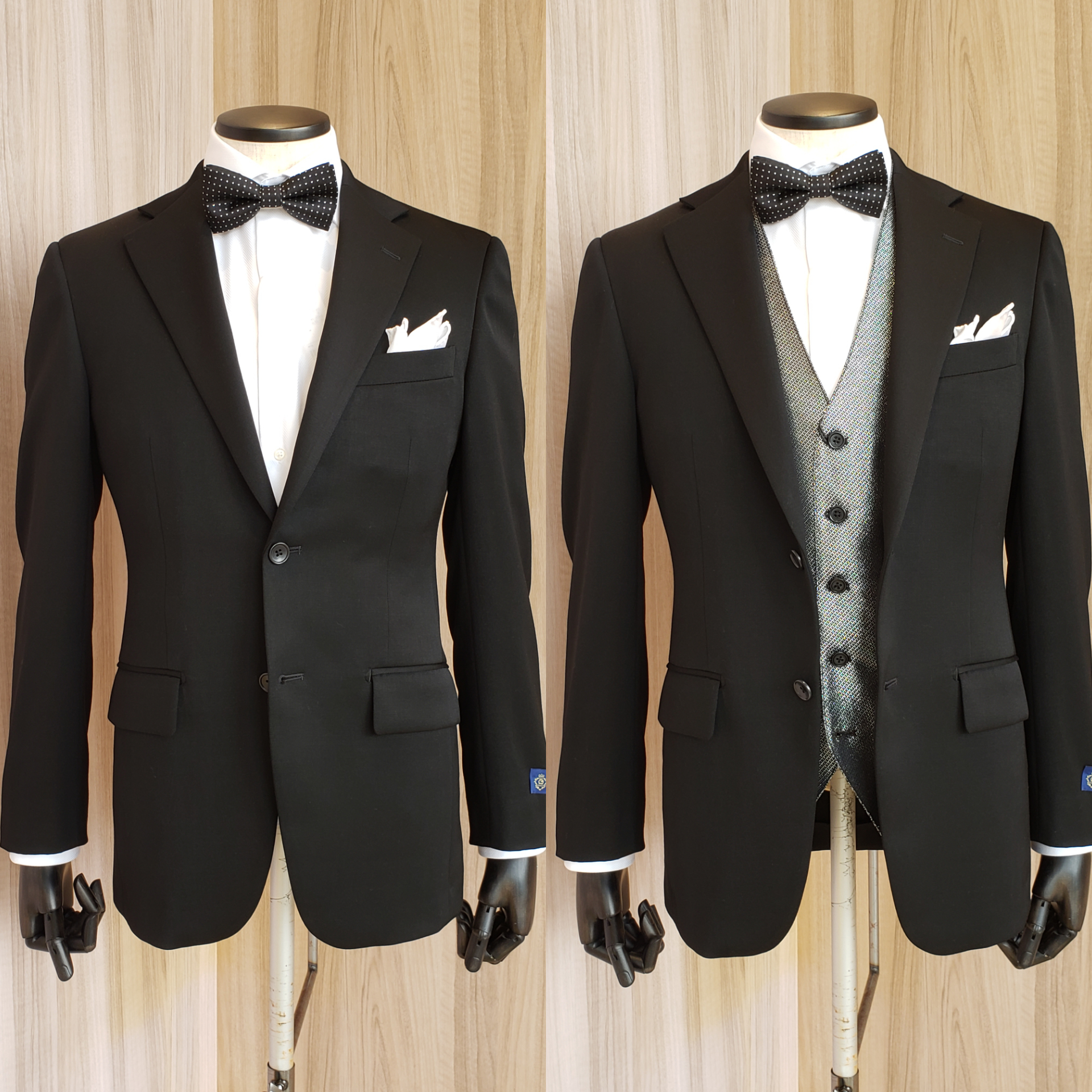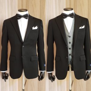 右は既製品で3ピースでご用意しているスーツです!