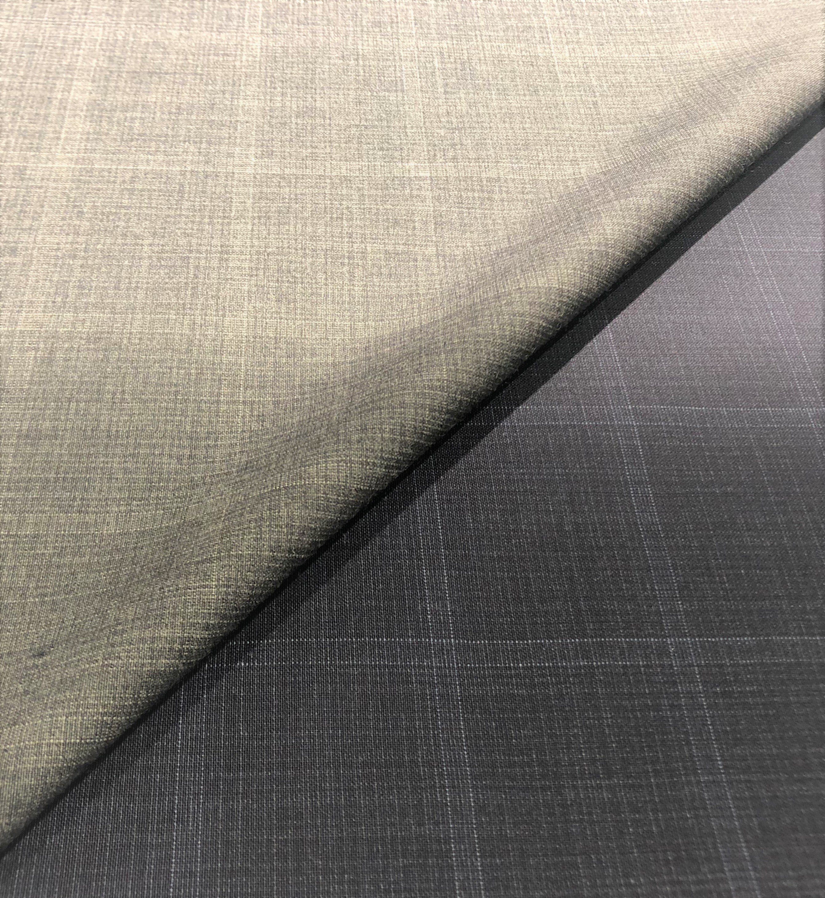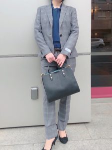 グレーのチェック柄は明るすぎず、落ち着いた印象でお召し頂けます。