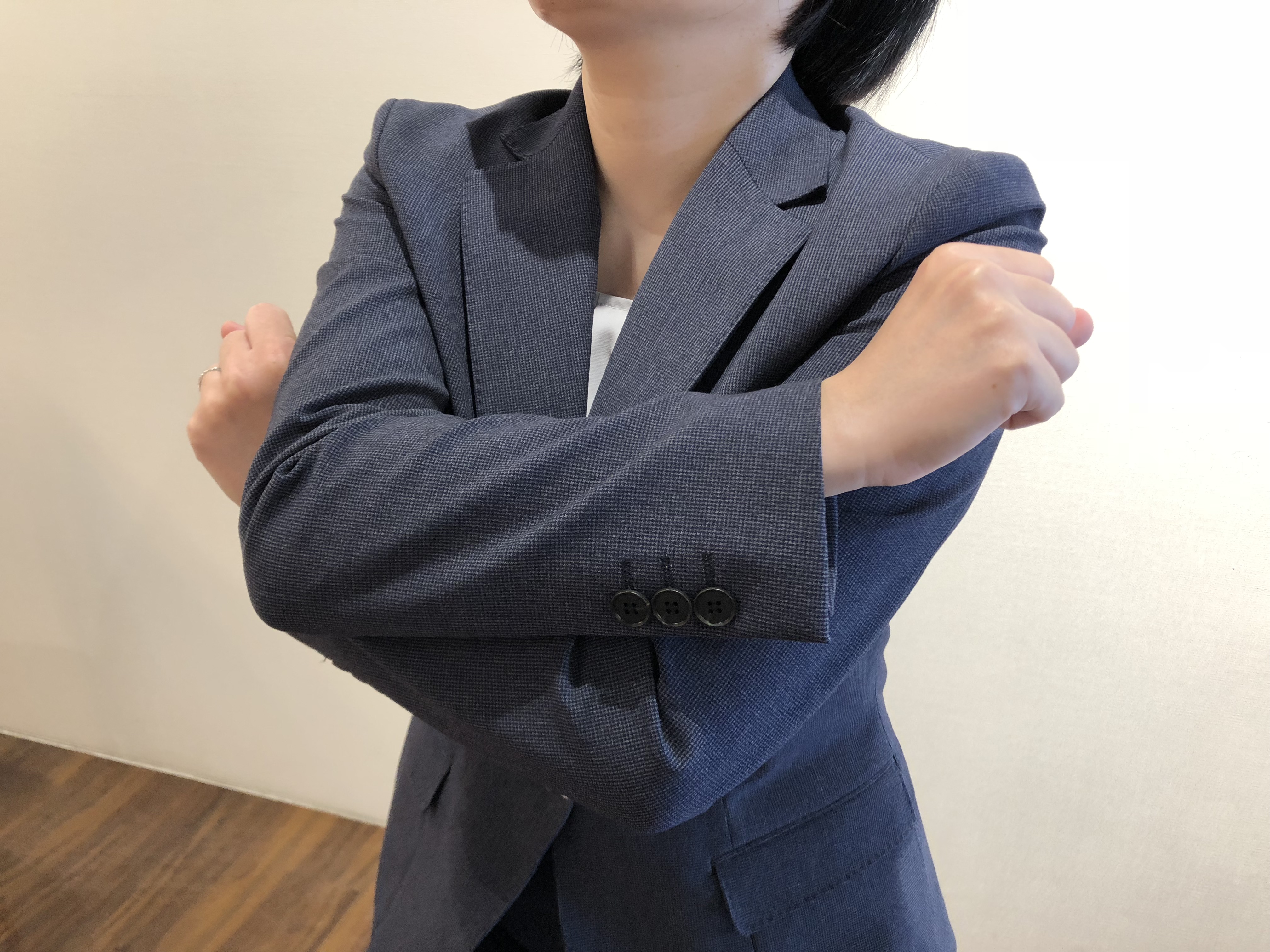 こちらのスーツ、名前の通り、360度どの方向にもストレッチが利く生地なんです♡
