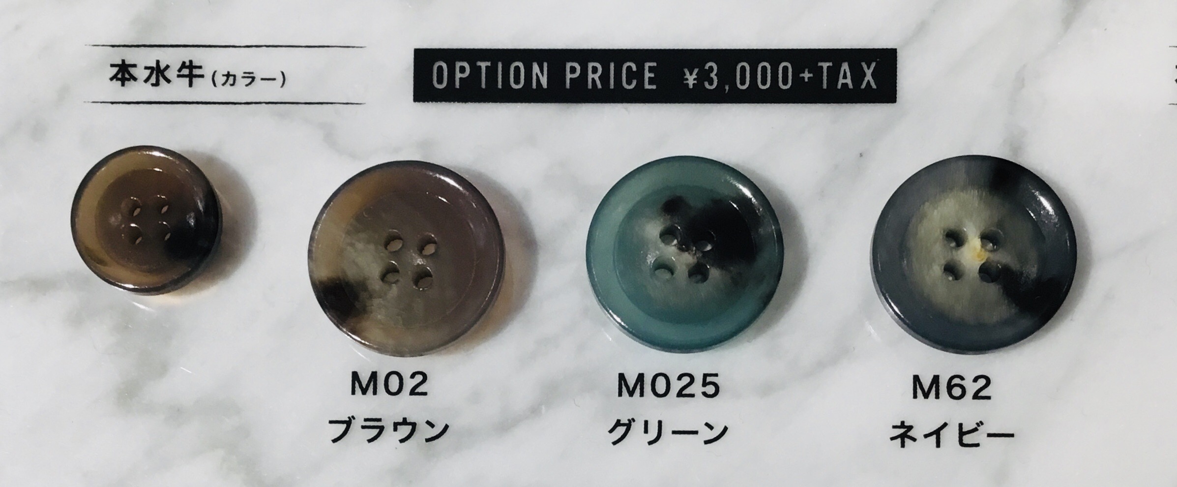 今までのボタンにはない色合いが上品さと本水牛ならではの高級感を兼ね備えたボタンになっております。重厚感がある黒の本水牛も人気はございますがエレガントな装いにもピッタリですので女性でもお使いしやすいボタンでございます。