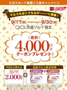 エポスカード新規ご入会で、合計4,000円分クーポンプレゼントキャンペーンも実施中です!!