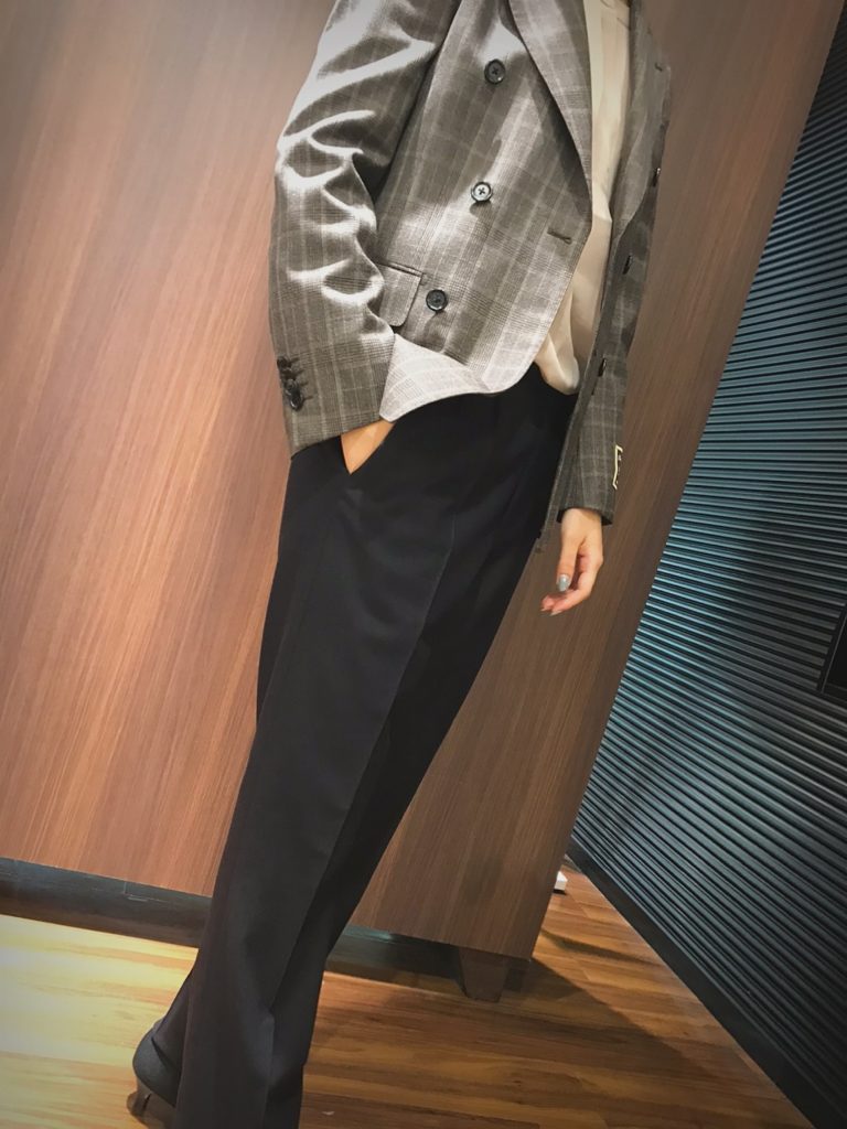 パンツはタック入りで腰回りに程よくゆとりを持たせており、