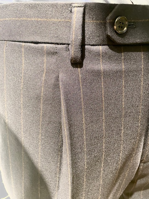 →股上がやや深めで、ワンプリーツでヒップ・腿回りにゆとりが出る為座った時もゆとり十分